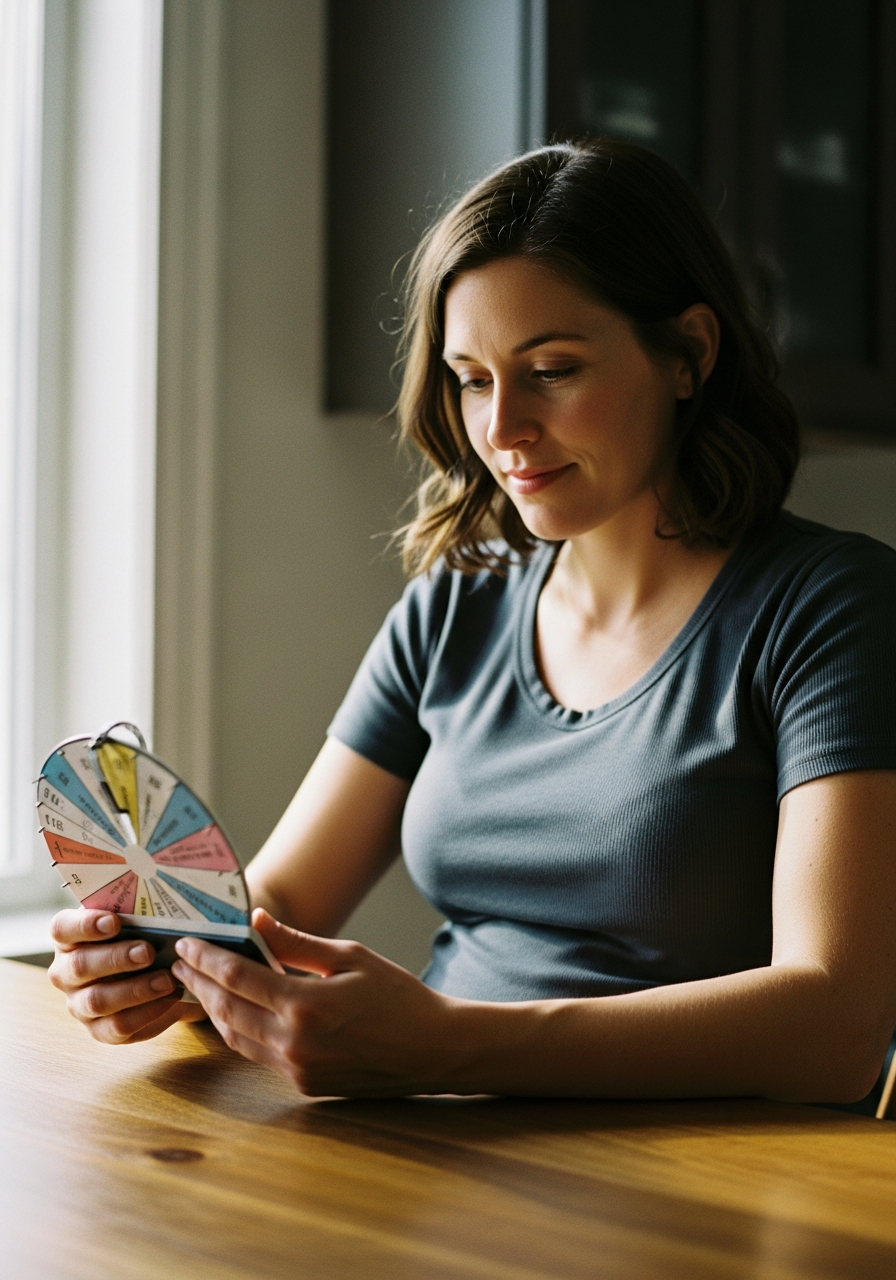 Eine Schwangerschaftsrechner-Drehscheibe dagegen ist analog, haptisch und braucht keinen Akku. Viele Hebammen arbeiten damit, weil sie auf einen Blick alle wichtigen Daten zeigt. Du drehst die Scheibe auf den ersten Tag deiner letzten Periode – und siehst sofort den Geburtstermin, alle SSW und oft auch die Untersuchungstermine.